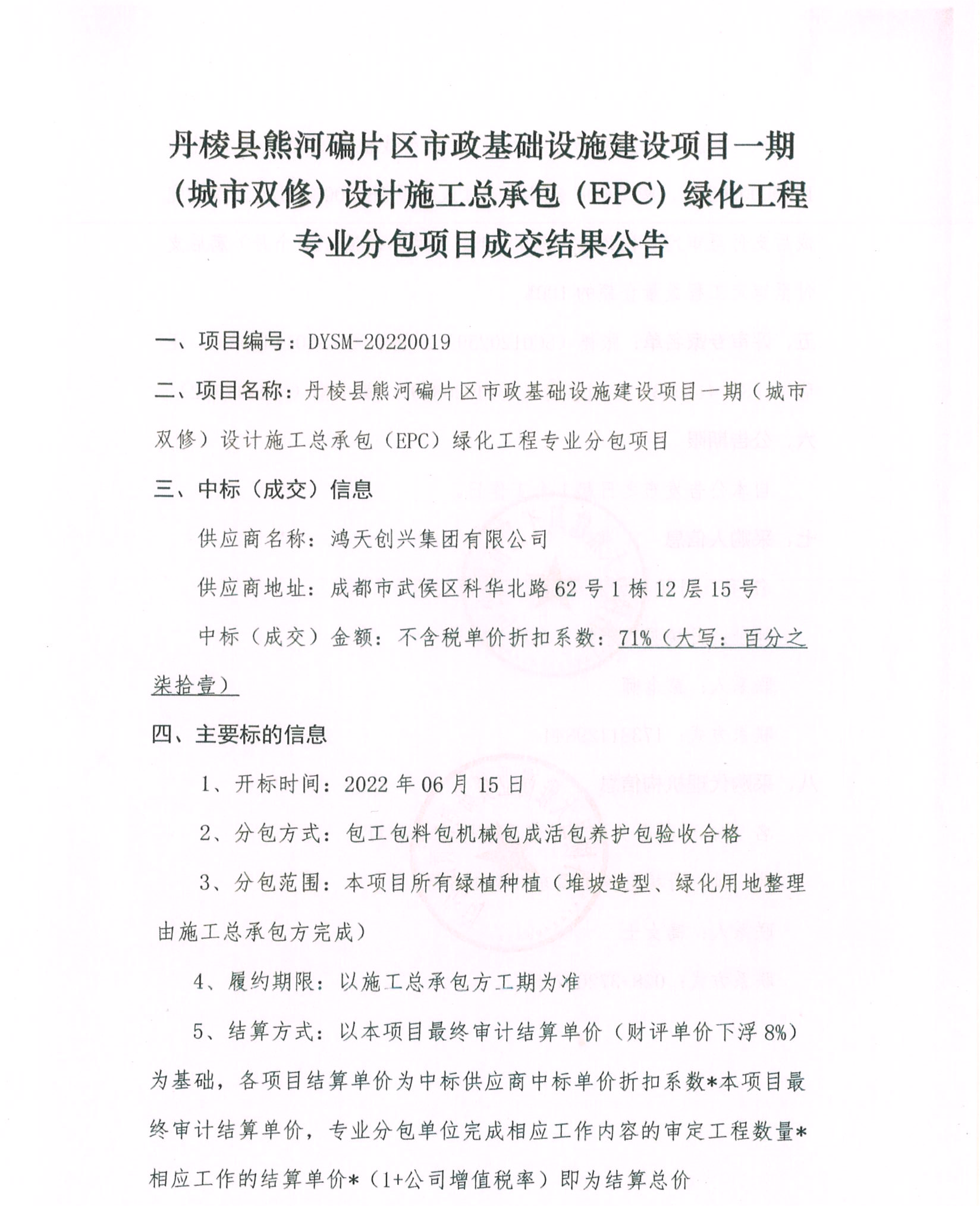 丹棱縣熊河碥片區(qū)市政基礎設施建設項目一期(城市雙修)設計施工總承包(EPC)綠化工程 專業(yè)分包項目成交結果公告