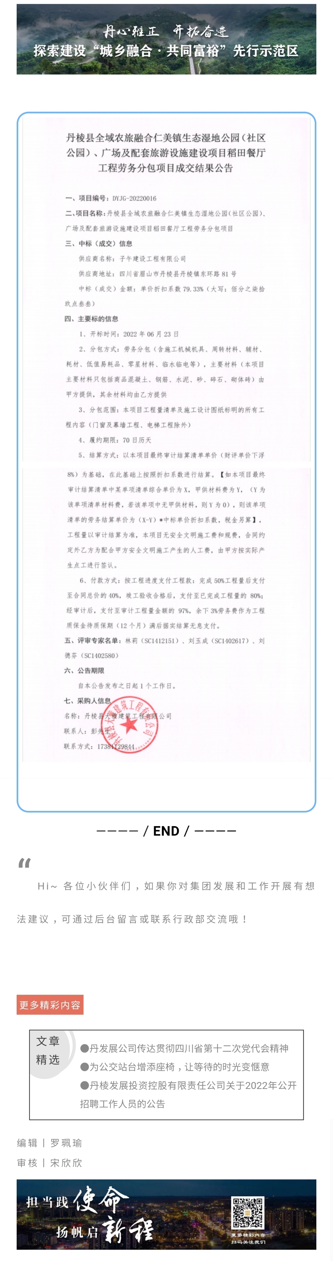 丹棱縣全域農(nóng)旅融合仁美鎮(zhèn)生態(tài)濕地公園(社區(qū)公園)、廣場及配套旅游設(shè)施建設(shè)項目稻田餐廳工程勞務分包項目成交結(jié)果公告