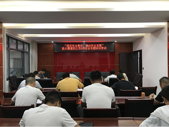 為進(jìn)一步強(qiáng)化安全生產(chǎn)管理舉措,提高安全生產(chǎn)管理水平,杜絕建設(shè)工程安全事故的發(fā)生,7月6日,縣大雅建筑公司開展第二次安全專題知識(shí)月度考試,進(jìn)一步將安全生產(chǎn)工作落到實(shí)處,推進(jìn)安全知識(shí)考試常態(tài)化。