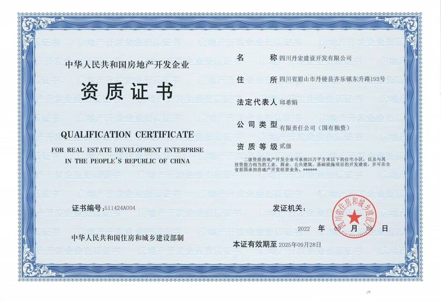 近日,丹發(fā)展集團(tuán)下屬的四川丹宏建設(shè)開發(fā)有限公司順利通過了四川省住房和城鄉(xiāng)建設(shè)廳資格審核,成功獲取了房地產(chǎn)開發(fā)二級資質(zhì)。標(biāo)志著丹宏公司可承擔(dān)建筑面積25萬平方米以下項(xiàng)目的開發(fā)建設(shè),并可在全省范圍承擔(dān)房地產(chǎn)開發(fā)經(jīng)營業(yè)務(wù),為進(jìn)一步擴(kuò)大建設(shè)規(guī)模及開發(fā)區(qū)域奠定了堅實(shí)基礎(chǔ)。